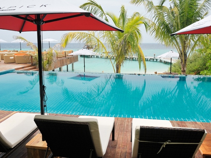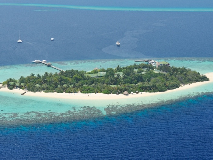 | Отдыхали с мужем и двумя детьми (4 и 9 лет) на Мальдивах в этом отеле с 31.11.2010 по 11.11.20010г. Летели прямым рейсом 8 ч 50 мин, самолет отличный, кормили хорошо 2 раза, у каждого был отдельный телевизор, подушек и пледов хватало всем, бортпроводники отлично выполняли свою работу. Аэропорт находится на отдельном острове с одной взлетно-посадочной полосой, ощущение, что садишься в океан (благо, что на экране телевизора видно посадочную полосу). Вид из иллюминатора не забываемый: по синей глади океана, разбросаны бирюзовые острова (бронируйте в самолете соответствующие места). До острова добирались на катере мин. 50. Штормило, по-этому нас не много потрясло (когда ехали обратно, океан был спокойным). Остров маленький, весь утопает в зелени. Домики стоят плотно, но отдыхающих встречаешь редко. В основном на ужине. Ресторан один, еда разнообразная вкусная. Есть перебор только со специями. Везде перец, перец, перец. Фруктов маловато. Персонал улыбчивый, дружелюбный. С противоположной стороны от пирса находится широкий пляж. Расстояние от пляжа до рифа от 5 до 10 метров, рядом большая красивая лагуна. В лагуне дно песчаное, вода прозрачная, плавают 2 ската и несколько рифовых акул. Очень удобно отдыхать с детьми, глубина в лагуне до одного метра. Риф густонаселен всякой живностью. Встретили всех представителей из книги « Рыбы Мальдив». Акулы, скаты, хирурги всех расцветок, огромные спинороги с зубами в открытом рту, осьминог, много мурен, морские звезды, кальмары, крылатки с длинными иглами, двухметровая барракуда (просто жуть!). Почти каждый день приплывали дельфины. Большая семья - семь взрослых дельфинов. Однажды ближе к вечеру к бую приплыла черепаха. Погода стояла замечательная, пару раз ночью шел дождь, а днем опять солнышко, океан спокойный, раза три вечером перед дождем дул сильный ветер, но волн не было, дети даже одни купались. Жили в двух номерах 126 и 127 (т. к нас четверо), номера просторные, кондиционер, большая 2-х спальная кровать, 2 кресла, журнальный столик, тумбочки, трюмо, платяной шкаф, бар, холодильник, мебель старовата, но все работает и функционирует, ванная комната большая хорошо отделана. Уборка и смена белья каждый день. Самые удачно расположенные номера это 109-135. 109, 110,111 номера хороши для влюбленных, из окна (оно на всю стену) виден океан, рассвет; пляж не большой уединенный . С детьми удобней брать номера 117-135. Они расположены чуть в глубине острова в тени, с огромным песчаным пляжем, есть где побегать и погонять крабов. На противоположной стороне острова (северо-запад) пляжа практически нет, остров размыт, а берег укреплен мешками с песком. Из развлечений: бильярд, теннис есть ночной бар с хорошими коктейлями, все заказы и покупки отмечаются в чеке под вашу подпись, в день отъезда расплачиваетесь. Главный бармен предложил нам рассчитаться наличными, минуя чек и нам дешевле, и он заработал. Одна пара рассказывала, что таким же образом заплатили за романтический ужин в 1,5 раза дешевле (где наши не пропадали!!!). Дискотек не было, но они там и не нужны. Детских площадок нет. Сначала вечерами было скучновато, но потом привыкаешь, и понимаешь как это здорово лежать в шезлонге на маленьком островке в Индийском океане и любоваться ночным небом. Полный «relax». А такого скопления звезд я еще нигде не видела. В отеле есть не большая библиотека, правда только одна
