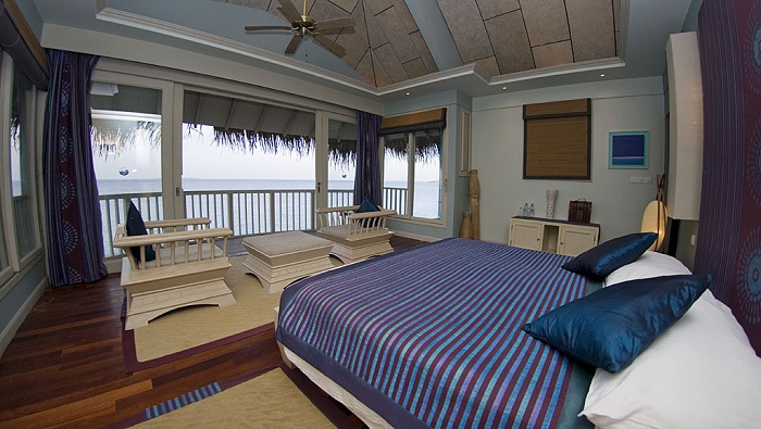 Ocean Villa (147 кв. м) - двухэтажная вилла. Состоит из спальни (2-й этаж), гостиной, ванной комнаты на открытом воздухе с ванной и душем, террасы с джакузи. Расположены на сваях. Макс. размещение – 3 взрослых или 2взрослых и 1 ребенок. (Запрещено размещение детей младше 12 лет.)