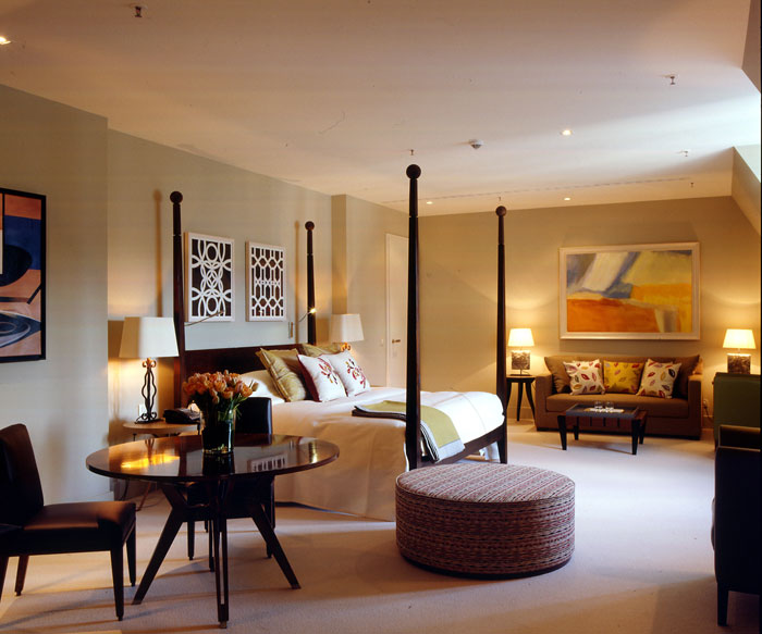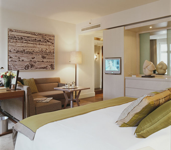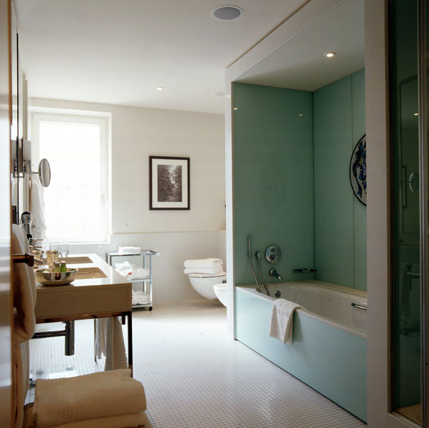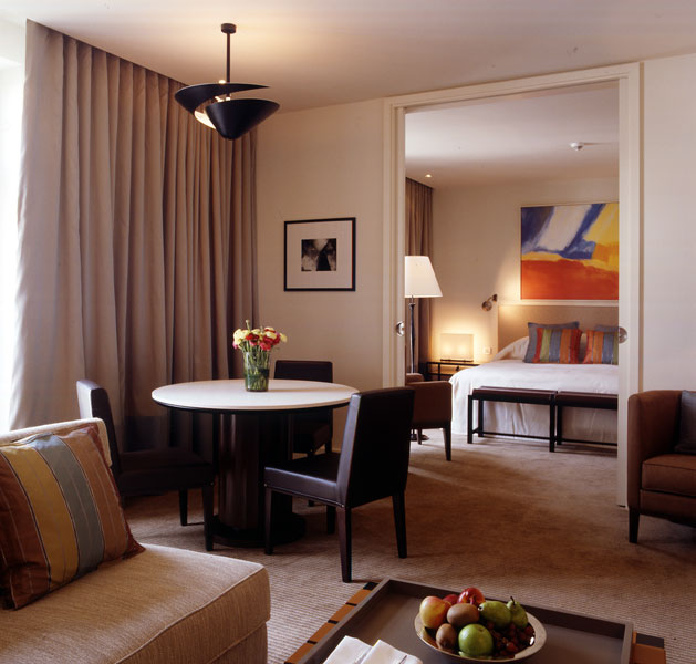 Уникальная концепция дизайна, разработанная Мартином Брудницки и его командой, ставит во главу угла особенный комфорт и подчиняет все декоративные средства: изысканную меблировку, скрупулезно разработанное освещение, игру цвета и линий, зеркала, дорогие ткани и современные технологии – приоритетной цели создания атмосферы домашнего уюта, гармонии и умиротворения. Ванные комнаты состоят из ванной и душевой кабины. Каждый номер включает балкон, террасу или мансарду.