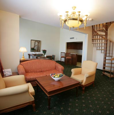4 двухуровневых Dublex suites (220 кв.м) на первом уровне – гостиная с мягкой мебелью, маленькая кухня, комната для переодевания, ванная комната с душем, на втором этаже – 2 спальни с дверью, ванная комната с ванной, 2 TV, размещение макс. 4 чел.
