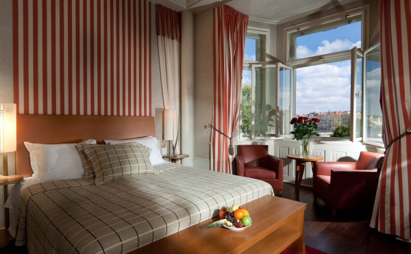 Junior Suite (35 кв. м) – состоит из спальни с двуспальной кроватью, зоны отдыха с письменным столом и креслом, ванной комнаты с ванной и душевой кабиной. По желанию предоставляется дополнительная кровать или детская кроватка. Вид на Влтаву или Пражский Град. Макс. проживание – 3 чел.