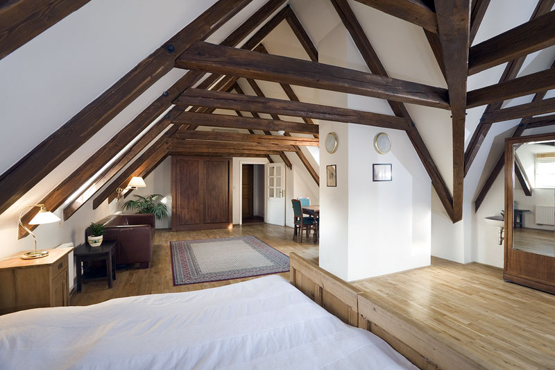 Номера обставлены в стиле Барокко, с сохранившимися кровельными перекладинами, создающих комфорт и ощущение уникальности. Апартаменты-люкс и представительские апартаменты как для индивидуальных туристов, так и для семей и небольших групп.