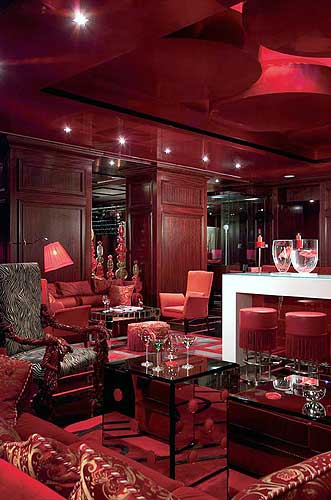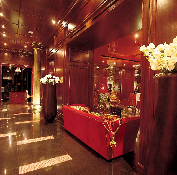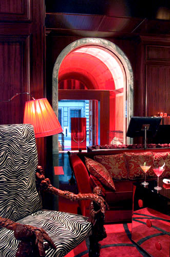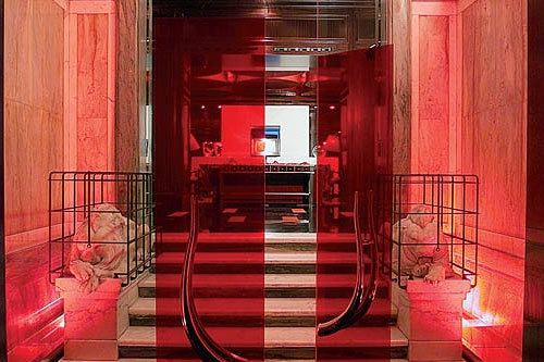 Boscolo Hotels (другие отели этой сети)Один из лучших проектов архитектора Adam D. Tihani, дизайнерский отель Aleph расположен в самом центре Рима, в 100 м от знаменитой Via Veneto. В стилистике отеля воплощена идея "Божественной Комедии" Данте о близости Рая и Ада, что отражено в цветовом решении интерьера. При оформлении помещений в основном использовались черные и красные цвета.