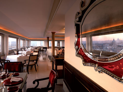 Отель сочетает в себе элегантную роскошь и современные технологии. Все номера отеля имеют изысканные индивидуальные интерьеры, с отделкой из благородных пород дерева и мрамора, дорогих тканей, антикварной мебелью, коврами и люстрами венецианского стекла, украшенные старинной живописью и предметами искусства. С балконов и террас открывается чудесный вид на архитектурные достопримечательности Рима.