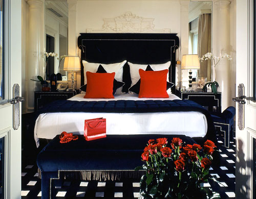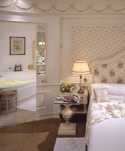Номер расположен на 2 этаже, с небольшим балконом, выходящим на Испанскую лестницу, состоит из гостиной, отделанной деревянными панелями, спальни, декорированной в светлых тонах с кроватью под балдахином, небольшого кабинета, 2 ванных комнат, одна из которых, выложена бежевым мрамором, имеет джакузи.