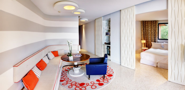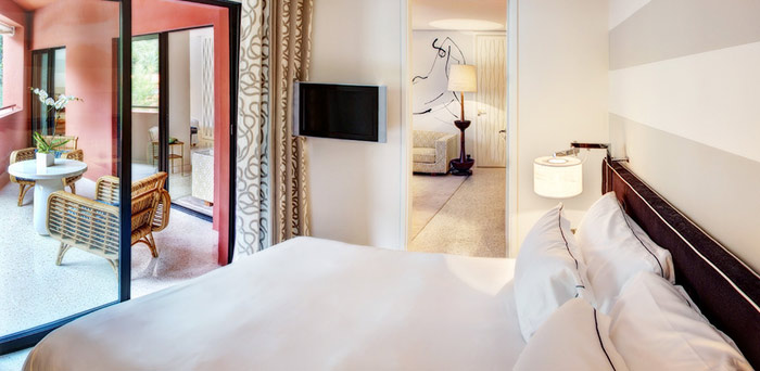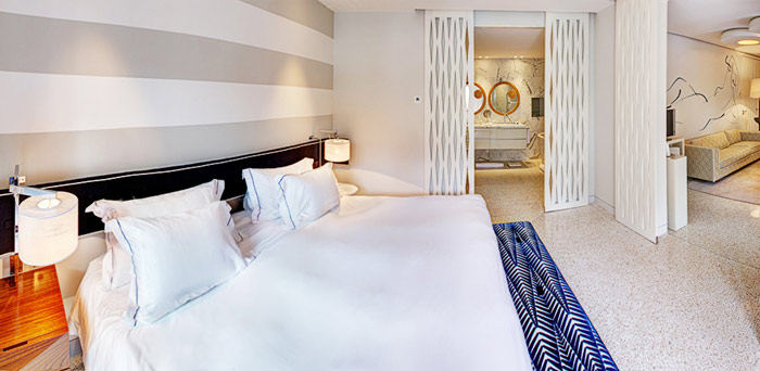 Junior Suite – Sea view (50 кв.м) - расположен на 2 и 3 этажах, состоит из спальни с гостиной зоной, небольшой гардеробной, ванной комнаты с ванной и душем, балкона или террасы с видом на море.