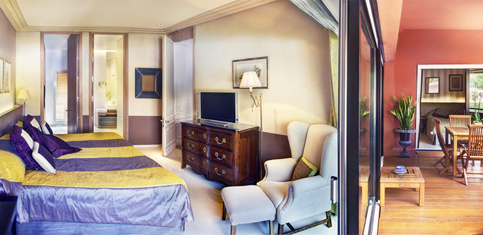 Two Bedroom Suite (95 кв. м) - прихожая, гостиная, 2 спальни, гардеробная, 2 ванные комнаты (одна – с ванной и душевой кабиной, вторая – с душевой кабиной), терраса. Дополнительно: DVD-плеер, кофемашина Nespresso. Расположены на 2 этаже. Вид на море и бассейн.