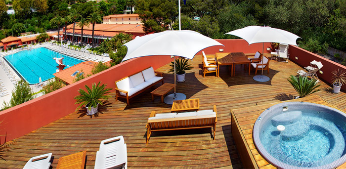 Exclusive Superior Room – Sea view with terrace (30 кв.м) - расположен на 1 этаже, состоит из спальни с зоной отдыха, ванной конматы, террасы с видом на море и выходом на прогулочную террасу.