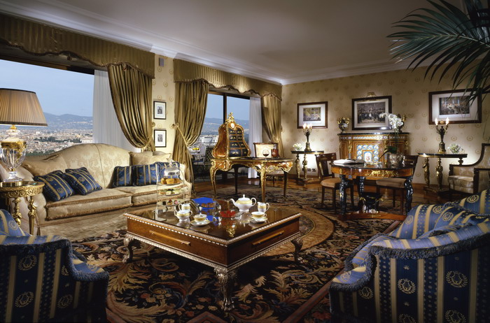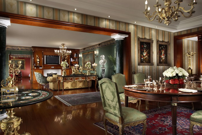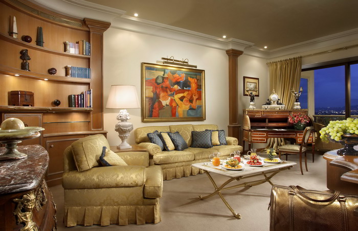Napoleon Suite (145 кв.м) - роскошный номер в имперском стиле, обставлен мебелью начала 19 века. С каждого из 3 балконов открывается вид на античные развалины. В номере: спальня с кроватью размера "king-size", отдельная гостиная, выложенная мрамором ванная комната с ванной, душем и телевизором, домашний кинотеатр, массажный стол, CD- и DVD-проигрыватель, HI-FI стереосистема. По запросу присоединяются 1 или 2 спальни с ванными комнатами.