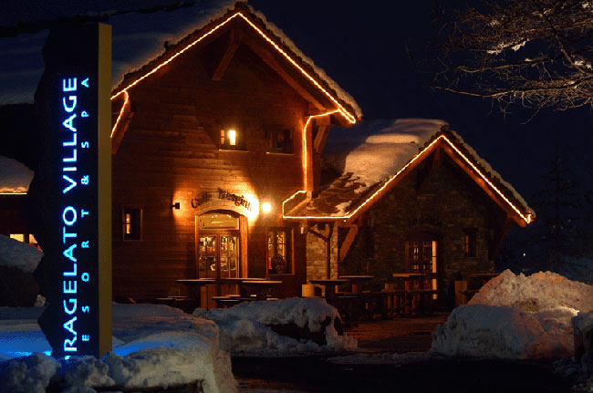 Дизайн отеля выполнен так, чтобы курорт органично вписался в окружающий горный ландшафт. У подножия склонов расположен фуникулер, построенный в средневековом альпийском стиле. Фуникулёр находится на территории курорта и поднимает к трассам средней сложности и сложным. Для новичков, пользующихся голубыми трассами, предусмотрен трансфер до Сестриера.