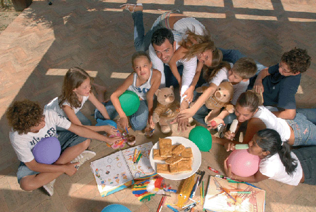 Дети в возрасте от 0 до 12 лет находятся под постоянным присмотром профессиональных воспитателей с 9 часов утра до 7 часов вечера. В домике: все виды детских игр и игрушек, все необходимое для рисования, вырезания, конструирования и клейки, полностью оснащённые ясли для самых маленьких (в возрасте до 3-х лет).