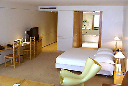Интерьер номеров декорирован мебелью в современном стиле, а так же мрамором, стеклом, ценными породами древесины и элементами орнаментальной штукатурки. Имеются номера для некурящих, инвалидов и гостей, страдающих аллергией.