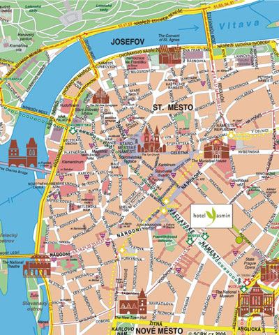 в центре Праги, окружен историческими и деловыми достопримечательностями, в нескольких минутах хотьбы до Вацлавской площади, ж/д вокзала, ст. метро "Museum" и "Mustek".