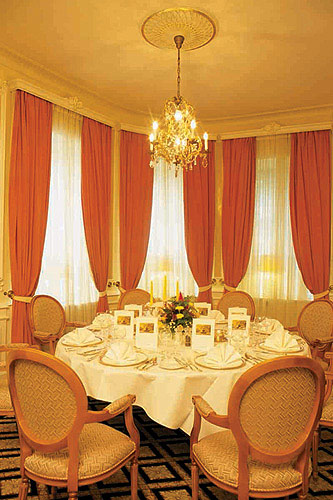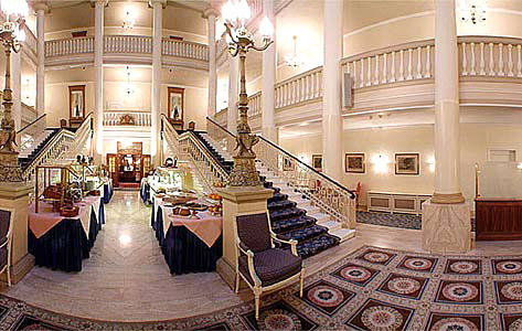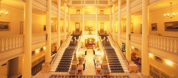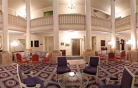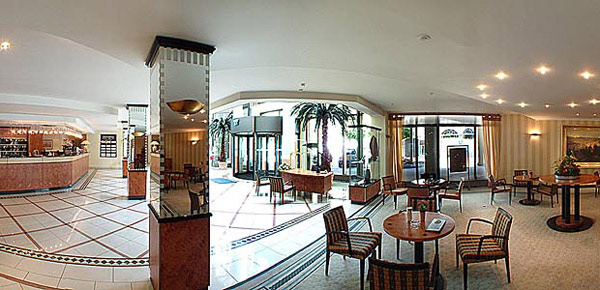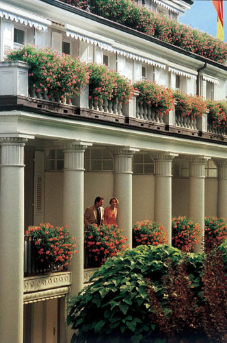 В парке перед главным входом в отель располагается знаменитый термальный источник - символ Баден-Бадена. Его изящные украшения, шепчущие каскады и взмывающие вверх струи воды приглашают вас в мир элегантности и утонченного стиля, открывающийся за эффектным вестибюлем с массивными ионическими колоннами.