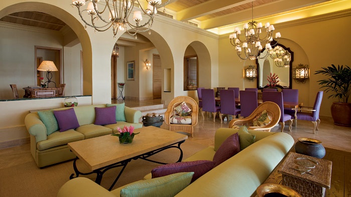 6 Ocean Suites (126 кв. м) - состоит из спальни с кроватью king-size, гостиной, столовой, ванной комнаты, гардеробной, гостевого туалета, 2-х террас. Номера могут соединяться с Junior Suite. Вид на море. Расположены на островке Frangipani. Макс. размещение – 2 взрослых и 2 ребенка до 12 лет.