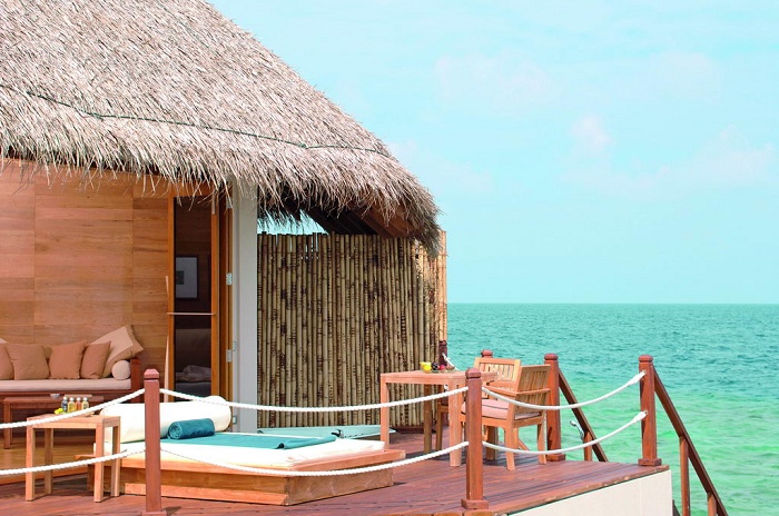 Площадь виллы - 84 кв. м. Макс. 2 или 2+1 чел. – по запросу. Водные виллы расположены в блоках по 2 номера. Виллы стоят на сваях в чудесной лагуне, на небольшом отдалении от пляжа. Виллы оформлены в нежных и теплых тонах, в декоре использованы дорогие породы дерева. Каждый номер имеет выход к морю с террасы. При заселении предоставляется бесплатно бутылка шампанского в номер, тарелка с фруктами – ежедневно, канапе в номере – каждый вечер. За каждым номером закреплен персональный батлер.