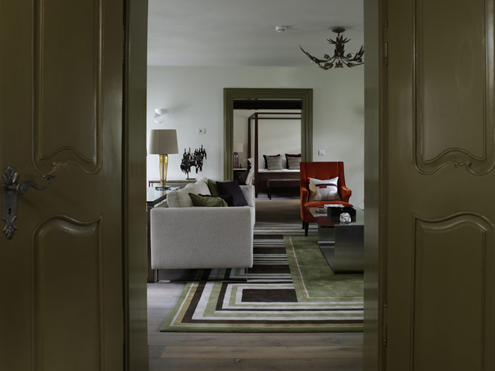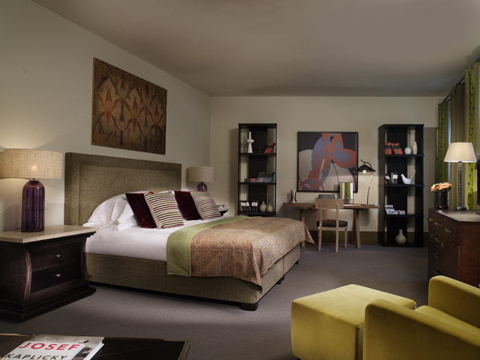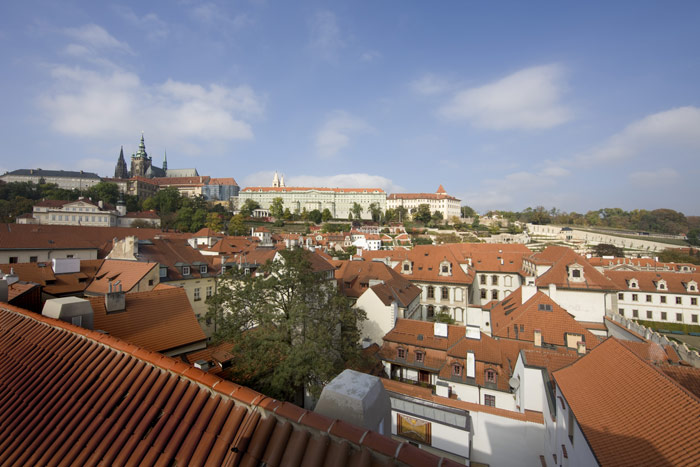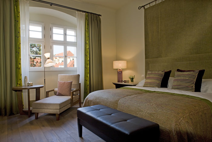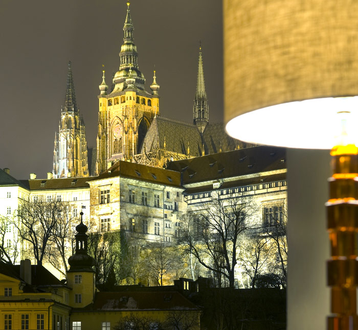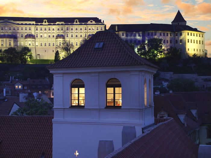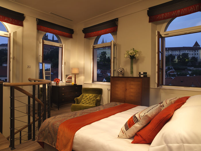 Deluxe Castle View Suite (77 кв. м) - раполагается на втором этаже, с видом на Пражский замок, спальня с двумя отдельными кроватями или с одной большой кроватью, гостинная, льняное постельное белье, гипоаллергенные подушки (по запросу). Ванная комната отделана мрамором; косметическое зеркало, телефон, полы с подогревом в ванной комнате. Максимальное размещение: 2 взрослых+1 ребенок.
