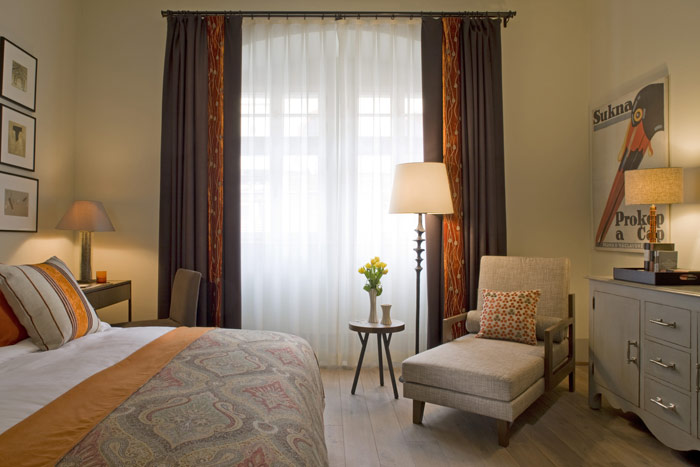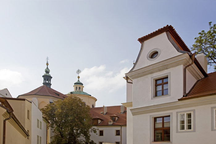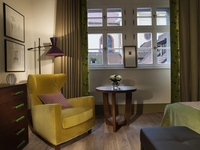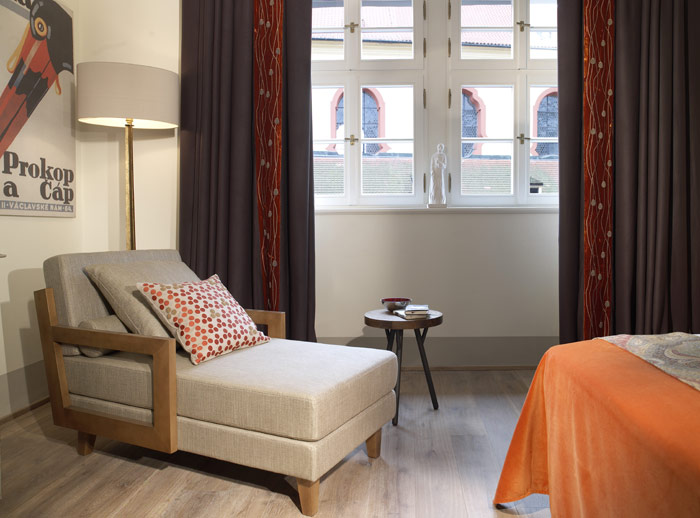 Интерьеры номеров выполнены в элегантном современном стиле, выдержаны в теплых тонах и изысканно декорированы, из окон номеров открывается живописный вид на монастырскую часовню, Пражский замок и ландшафты старинного города.