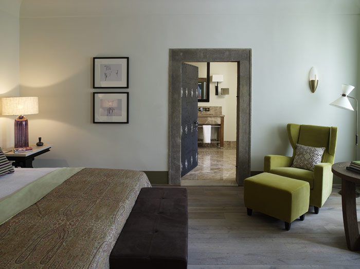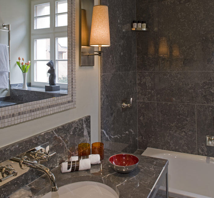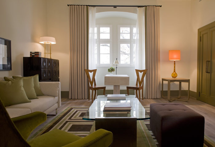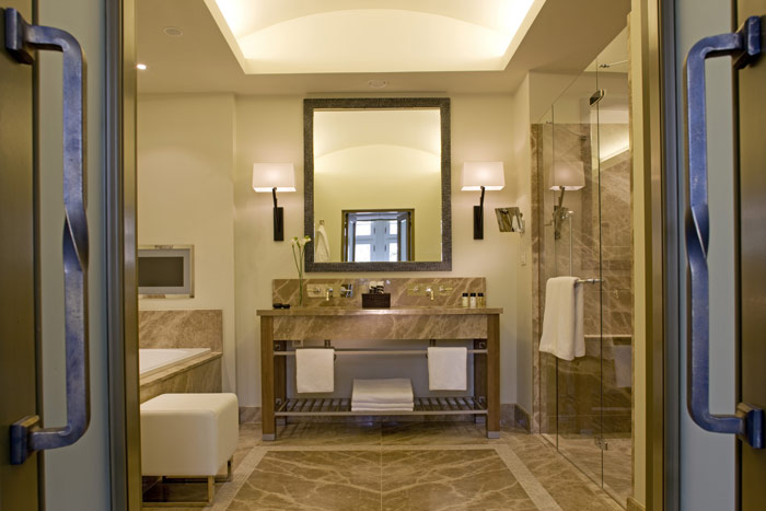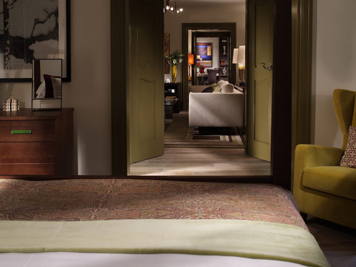 Junior Suite (42 кв. м) - с видом на внутренний двор, гостинная зона с большим письменным столом, кровать king-size или queen-size, льняное постельное белье, гипоаллергенные подушки (по запросу). Ванная комната отделана мрамором; косметическое зеркало, телефон, полы с подогревом в ванной комнате. Максимальное размещение: 2 взрослых+1 ребенок.