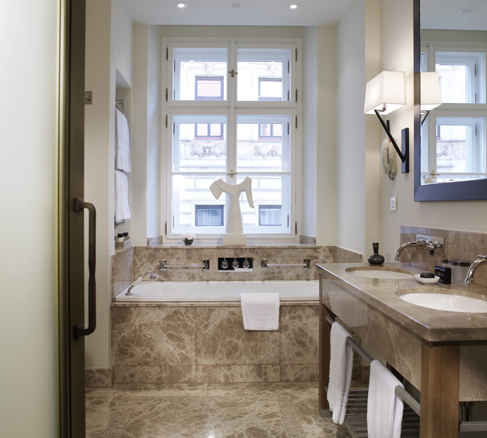 Superior Deluxe Castle View Twin Room (38 кв. м) - с видом на Пражский замок, две отдельные кровати, большой письменный стол, льняное постельное белье, гипоаллергенные подушки (по запросу). Ванная комната отделана мрамором; косметическое зеркало, телефон, полы с подогревом в ванной комнате. Максимальное размещение: 2 взрослых.