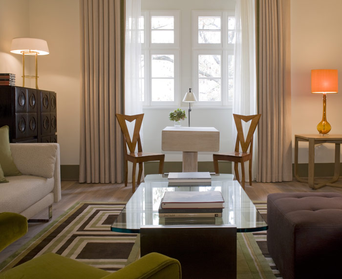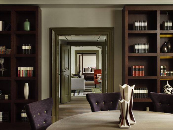 The Thomas Suite (117 кв. м) - с видом на внутренний двор, состоит из спальни с большой кроватью, гостинной с камином, столовой, гардеробной, льняное постельное белье, гипоаллергенные подушки (по запросу). Ванная комната отделана мрамором; косметическое зеркало, телефон, полы с подогревом в ванной комнате. Максимальное размещение: 2 взрослых+1 ребенок.
