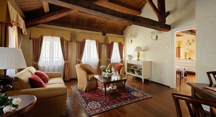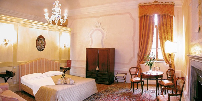 Номера находятся в трех разных зонах и наполненных неповторимым очарованием: 50 номеров находятся внутри замка, 16 - в пристройке и 14 - в Вилле Марчелло Маринелли.