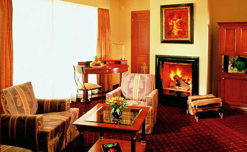 Ermitage–Suite - двухкомнатный номер с гостиной, спальней, камином, джакузи на балконе.