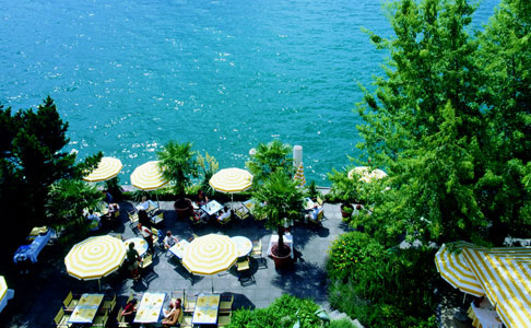 на берегу озера Тун в самом центре небольшого курортного городка Мерлинген рядом с Интерлакеном.