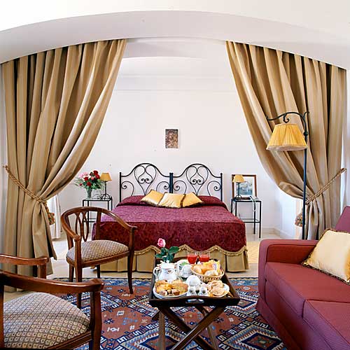 San Domenico Suite (130 кв.м) – самый исключительный номер в отеле, имеет террасу (70 кв.м) с видом на море. В номере две жилые комнаты и гостиная с камином, кухня, две ванные комнаты, джакузи и душевая кабина.. Этот номер идеален для проживания семьи или для большой компании.