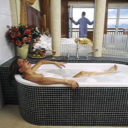 в ванной комнате — ванна/душ, фен, халаты