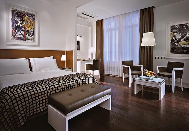 Superior (20-26 кв.м) – номер для двух гостей, двухместный или супружеский. Мебель, ткани и световое решение в современном и элегантном стиле "made in Italy", авангардные технологические решения для максимального комфорта гостей.