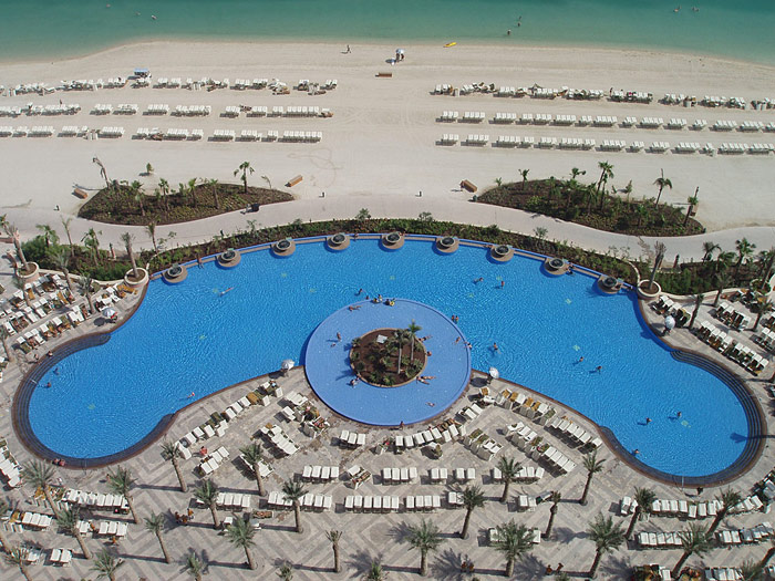 Для любителей плавания построены бассейны Royal Pool и Zero Entry Pool, и, конечно, созданы великолепные пляжи рядом с Royal Towers и в парке Aquaventure. Общая протяженность пляжей составляет 1,4 км.