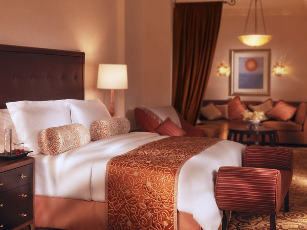 Этот великолепный номер расположен прямо над вершиной арки, между двумя частями Royal Towers. Его площадь составляет 924 кв. м. Он занимает полностью весь 22 этаж, и даже своеобразный мост, соединяющий 2 части здания Royal Towers. Сюда можно подняться через восточное крыло на отдельном лифте. В номере – три спальни, а из огромных окон (от пола до потолка) открывается красивый вид на «пальму» Jumeirah и Персидский залив. Выход на южный балкон – из главной спальни и из гостиной, выход на северный балкон – из второй спальни (с кроватью Kingsize) и из гостиной. При входе в номер сразу видно столовую со столом, покрытым сусальным золотом, на 16 персон и большой зал. Отдельно от основного зала – библиотека или медиа-центр, оборудованный по последнему слову техники, с возможностью свободного доступа в Интернет. В главной и во второй спальне с кроватью Kingsize – две ванные комнаты, в третьей спальне – две кровати Queensize и одна ванная. К услугам гостей – персональный дворецкий 24 часа в сутки.