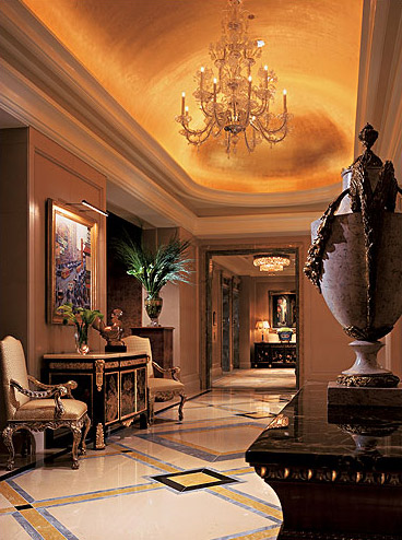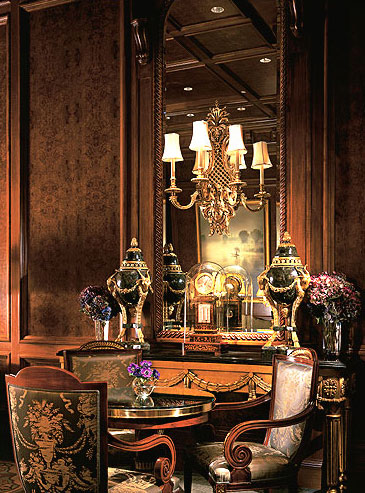 Здесь вы встретите прекрасно оформленные интерьеры отеля, выдержанные в классическом стиле. Дорогие ткани и ковры, лучшие породы темного дерева, шикарная драпировка стен, мрамор и хрусталь, а также художественные полотна, украшения из камня и мебель с инкрустацией – завешают общий образ отеля The Ritz-Carlton New-York.