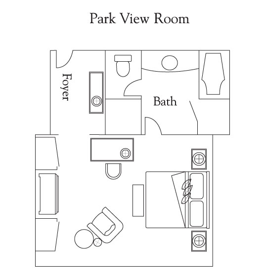 Parkview Guestroom - общая площадь - 42 кв.м. Из окон открывается прекрасный вид на Центральный парк. К услугам гостей номера телескоп. Номер состоит из спальни, ванной комнаты и небольшой прихожей. Постельное белье, халаты и покрывала от знаменитой фирмы Frette