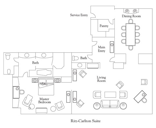 Ritz-Carlton Suite - 142 кв.м, на 21 этаже, состоит из двух спален, гостиной, столовой, двух ванных комнат