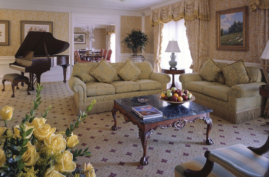 The Ritz-Carlton Suite (117 кв.м): спальня с кроватью king-size на четырех столбиках, отдельная гостиная с роялем и современной аудио- и видеотехникой, столовая, кухня дворецкого, ванная комната с джакузи, отдельная гардеробная комната, гостевой туалет, балкон с садовой мебелью и вводом на гавань и Тихий океан. Возможно присоединение к номеру дополнительной спальни с двумя отдельными кроватями