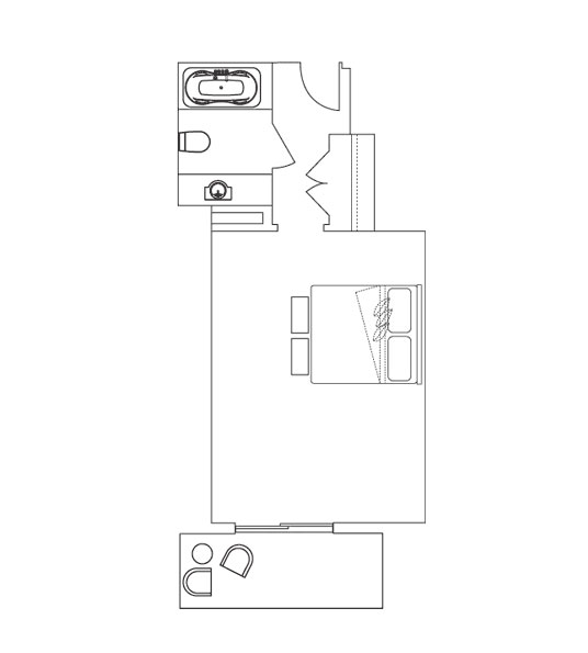 Deluxe Room (23 кв.м): кровать king-size или две кровати queen-size, гардероб, комод, письменный стол, ванная комната, небольшой балкон (в номерах со второго по двенадцатый этажи) и терраса с шезлонгом в номерах первого этажа