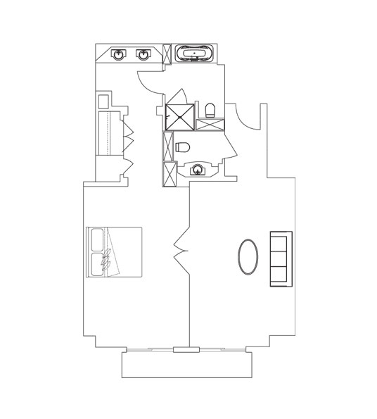 • Executive Suite (45 кв.м): спальня с кроватью king-size, отдельная гостиная с диваном, креслами и письменным столом, большая ванная комната с гардеробной зоной, небольшой балкон с видом на гавань и Тихий океан