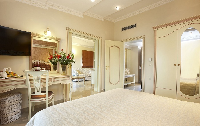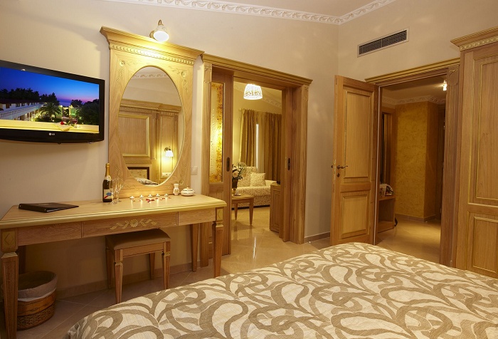 10 Junior Suites (34 кв. м) – состоит из спальни с кроватью king-size, салона, ванной комнаты с душевой кабиной с гидромассажем, балкона/террасы. Расположены на последнем этаже центрального здания. Вид на море. Номера построены в 2009 году.