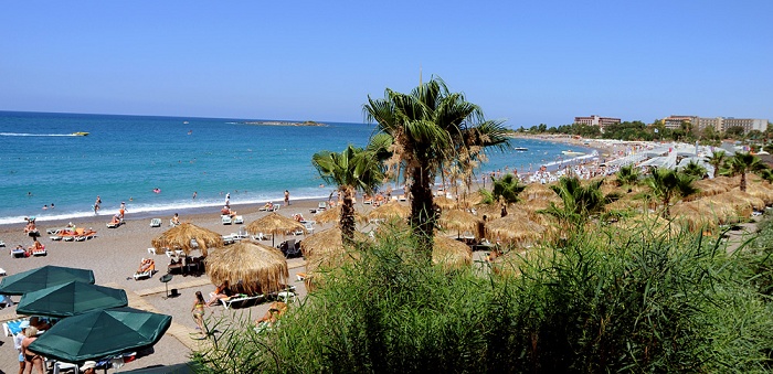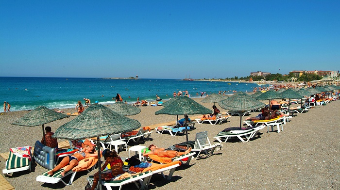 в 87 км от аэропорта г. Анталии, в 33 км от г. Аланьи, на самом берегу моря.
