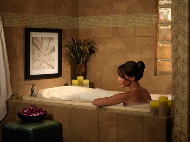 Spa Deluxe Room (37-46 кв.м): кровать king-size, просторная гостиная зона с джакузи, ванная комната с раковиной и душевой кабиной