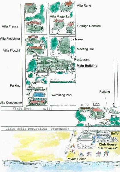 Это один из самых известных отелей Тосканского побережья, расположенный на престижном курорте Форте Дей Марми. Отель состоит из трех корпусов – «Augustus», «Augustus Lido», представляющих собой старинные виллы, и «La Nave» - здание современной постройки, расположенное за главным корпусом. Отелю также принадлежат 7 отдельно стоящих вилл, каждая из которых имеет свой сад.Расположение отеля Augustus & Lido: