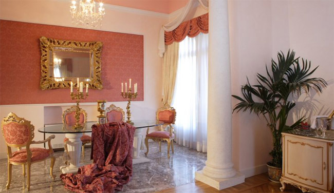 Cостоит из спальни, гостиной, залы для встреч на 8 гостей, мраморной ванной комнаты с гидромассажной ванной и душевой кабиной и террасы площадью 20 кв. м.