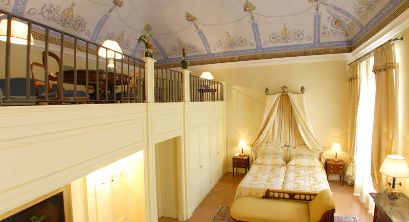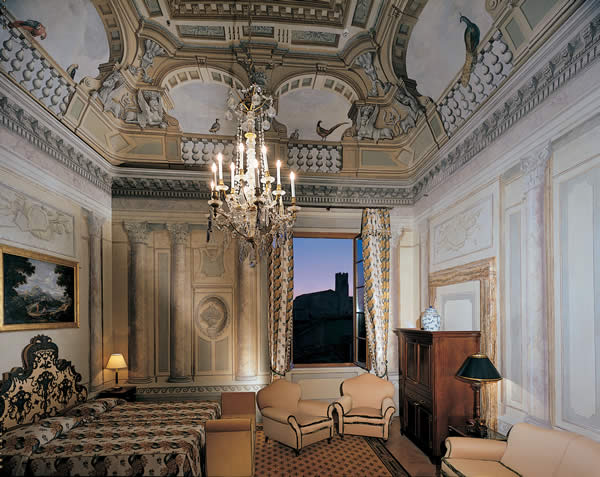 Все номера имеют великолепный индивидуальный интерьер, отражающий старинную дворцовую роскошь: потолки, расписанные фресками или обшитые деревянными балками, изысканные картины и гравюры, антикварная мебель, дорогие ковры и сверкающие хрустальные люстры. В номерах продумана каждая деталь — от тщательно подобранных сортов мрамора в ванных комнатах до самой современной техники.
