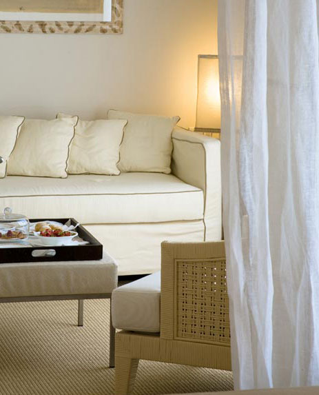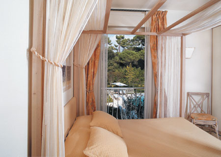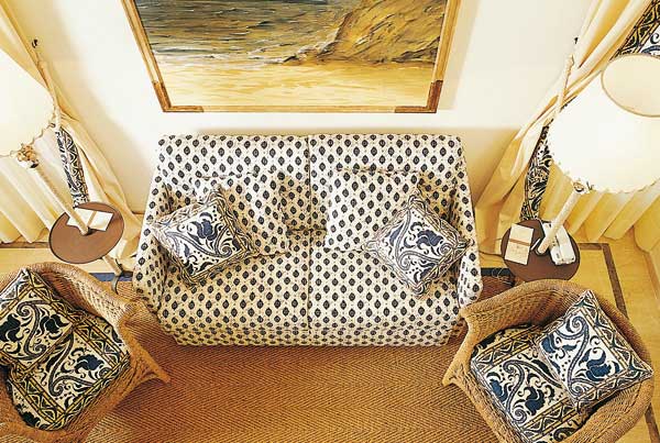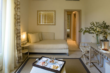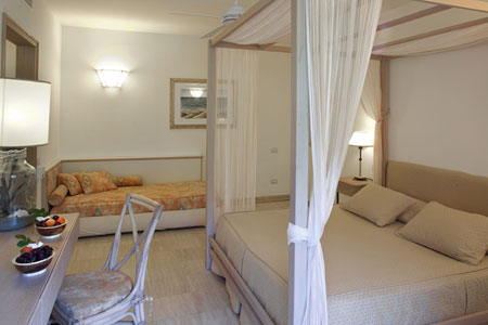 В комнатах большие окна и балконы, в большинстве номеров — с видом на море. Номера украшены гобеленами с морской тематикой, выполненными на заказ дизайнером Lorenzo Lazzeri. На каждом гобелене — цитата о море какого-либо известного писателя или поэта. В некоторых номерах над кроватями — тканевые драпировки. Комнаты украшены панно, изящными светильниками, цветами, цвет покрывал гармонирует с цветом штор. Ванные комнаты отделаны травертинским мрамором.