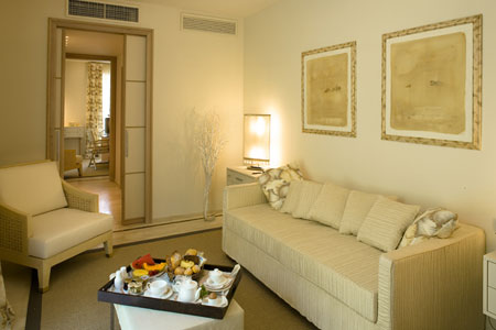2 Suites — роскошные номера; состоят из гостиной, отдельной спальни, 2-х ванных комнат с джакузи и балкона