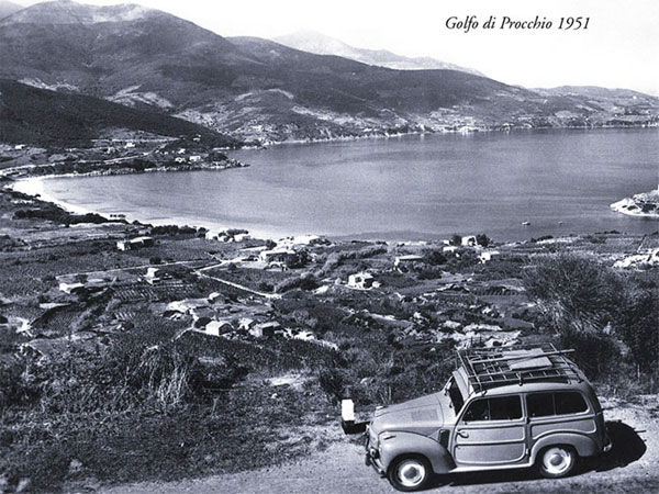 среди сосен на пляже Проккио (Procchio) с ослепительно-белым песком и красивым темно-голубым цветом моря.