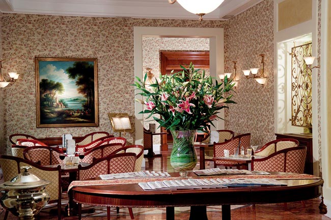 Все номера отличаются между собой, но каждый восхитительно оформлен отделочными работами, а меблировка согласуется с дорогим паркетом, мрамором, мягкими коврами и дорогими тканями, украшающими мебель, таким образом создавая чувствительную атмосферу удовлетворения и умиротворения.