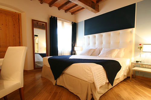 Номера элегантно оформлены в современном стиле, каждый имеет индивидуальные черты. Особое внимание уделено деталям отделки и аксессуарам. Особенностью Deluxe Room являются отреставрированные деревянные потолочные балки XVI-XII веков. Есть одно- и двухэтажные Suites и Junior Suites. Эти номера обставлены кожаной мебелью, некоторые из них располагаются на двух уровнях. Ванные комнаты во всех номерах отделаны мрамором. В номерах есть письменный стол.